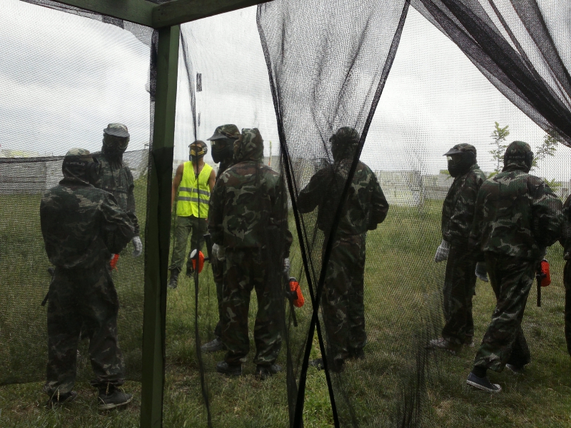 Беседки у пейнтбола. В него можноиграть под открытым небом или в павильоне при непогоде