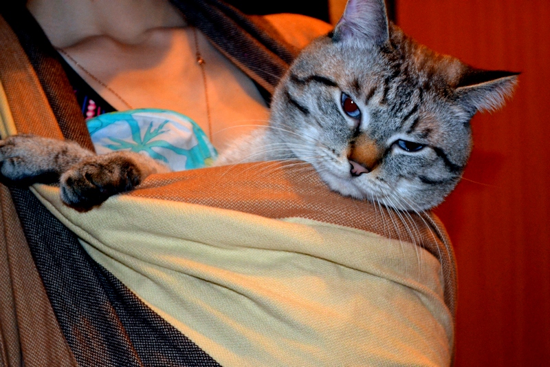 СлингокотЭ))) после операции не мог передвигаться нормально , но с удовольствием сидел в шарфе)))