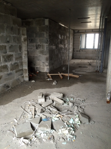 Посетил стройку. Дело движется, хотя и медленно. В последнем подъезде, самом близком к готовности, осталось залить пол, установить входные двери, розетки/выключатели и счетчики. Ну и сам подъезд покрасить. Фотки одной из квартир на 3 этаже: