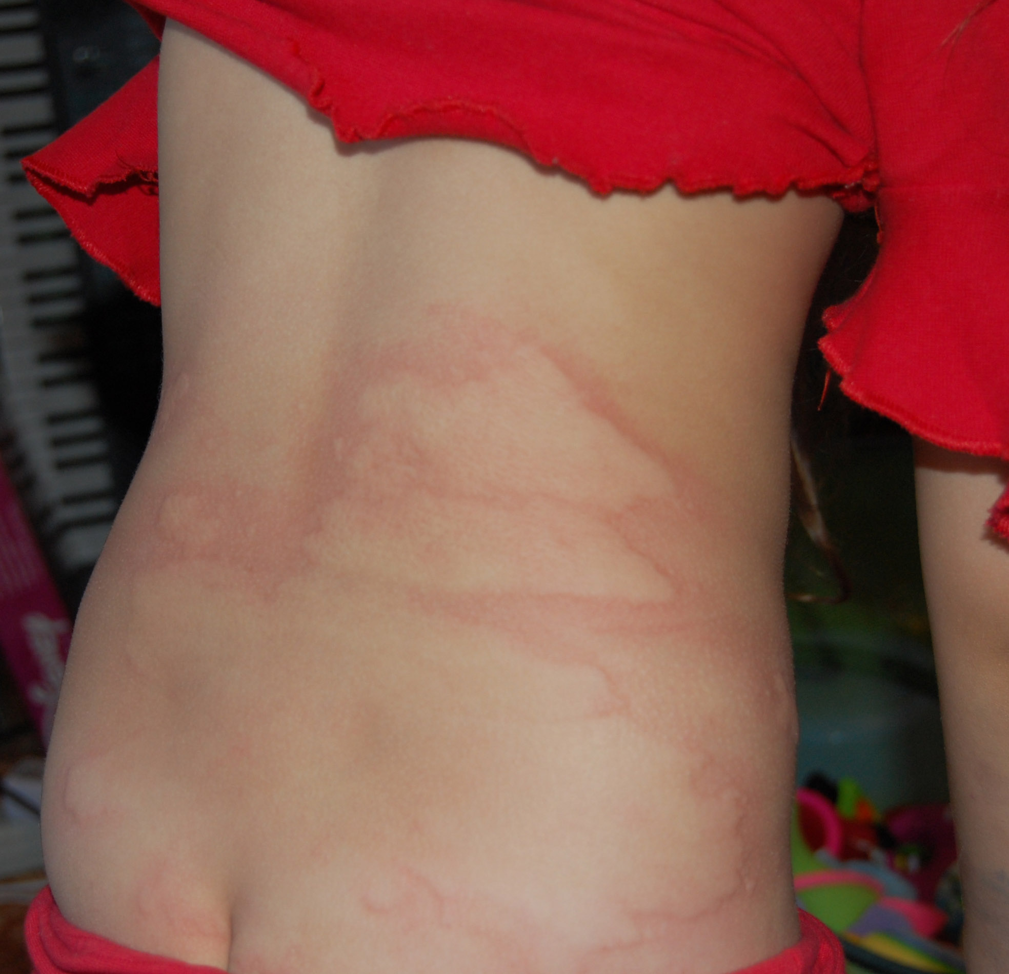 Очень похоже на крапивницу. Это пищевое ,либо контактное. У Саши было во младенчестве такое, когда он раздавил в руке яйцо сырое и попробовал его.