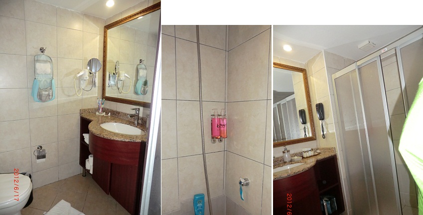 ну вот, санузел и номер... на бардак не обращаем внимание, - не успеваю за тремя мужиками убирать... Кровать маловата, шириной 1,5 метра. Зато доп. кровать полноценная. От второй доп. кровати мы отказались, т.к. малой спит с нами. Было тесно, мы тумбочку между кроватями придумали убирать на ночь, и сдвигали кровати вместе. Так еще можно жить )))) в сети, на том же tophotel куча фоток, в т.ч. и фото туристов, они реалистичные. номер небольшой, но мы в футбол и не играем в нем... если в номере, то на кроватях...Маленький балкончик, с такой сушилкой. В душе два таких флакона с гелем-шампунем (в обоих пузырьках одно и то же) В маленьких пузырьках на умывальник ставять кондиционер для волос. У меня волосы некапризные, мыла их средством, кондиционер попробовала один раз, т.к взяла свой, а домой его везти неохота... к комплекте принадлежностей - ватные палки и диски,шапочки для душа, расческа, пилка для ногтей мини-тюбик зубной пасты и раскладная зубная щетка.