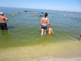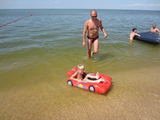 А это море в Должанке, выложила для сравнения, людям, которые на матрасе за спиной моего мужа, уже по грудь, а они в полутора метрах от него