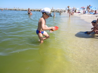 Там 2 залива: Таганрогский и Ейский. Ейский там где "Водник" писали выше, дно ил, мелко, песок ракушечник. А вот на Таганрогском заливе с др. стороны города, глубже, на дне песок, на берегу тоже мелкий приятный песок. Вода в отличии от Чёрного моря теплее. В этом году было проблематично снять жильё, местные жители связывали это с наводнением на Чёрном море. Потому, как обычно жильё можно снять легко и выбор большой. Есть частная клиника со всеми необходимыми врачами (ЛОР 500 р приём ), дет. поликлиника свободно нас обслужила, есть КРУГЛОСУТОЧНЫЙ Магнит, Океанариум (фигня полная ), Дельфинарий - класс, дают даже на дельфине покататься за большие деньги, мой ребзик катался, есть несколько парков с каруселями, ну и собственно море.Мы были на своих машинах, поэтому объехали весь город с разных сторон, так же выезжали в Должанку, мне там оч понравилось, море чистейшее. По уменьшаю фотки, выложу тут. |