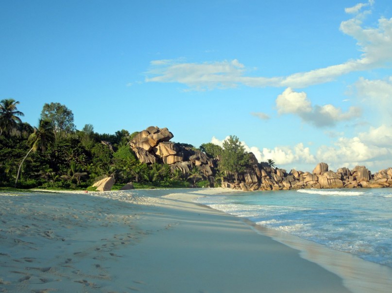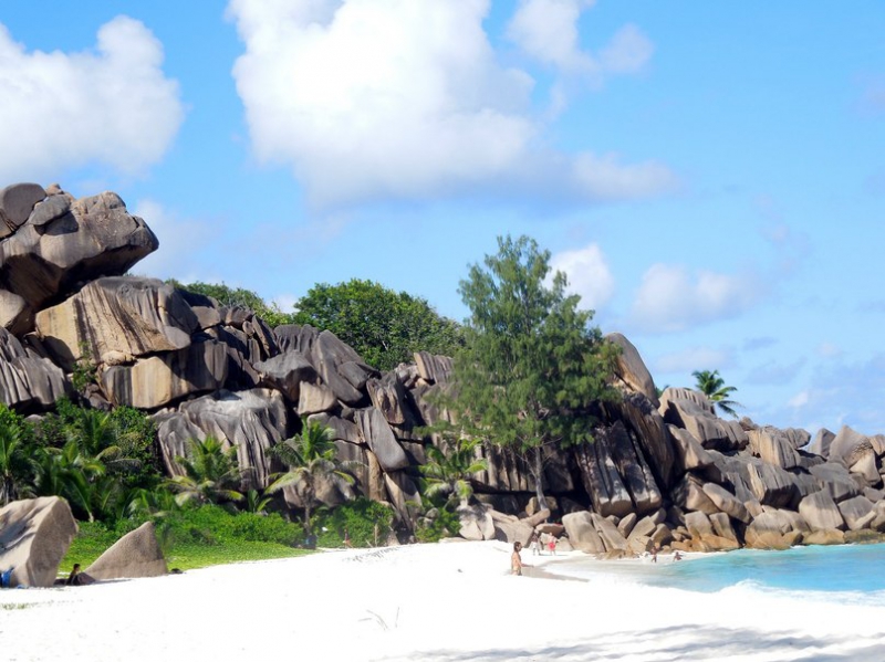 | - голос + Летали самостоятельно на Сейшелы в 2012г. Ну что сказать... пока для нас Сейшелы - это лучшее место на земле! Были много где - тайланд, вьетнам, доминикана, египет, турция, италия, франция, сша, крит, санторини... Отдыхали на трех островах - первый Маэ (самый большой и популярный), второй Праслин (поменьше, пляжи просто потрясающие), третий Ла диг (самый маленький (пляжи не менее потрясающие).  Бронировали отели сами на первых двух островах, на Ла диге бронировали апартаменты в бунгало. Между островами перемещались на паромах. Брали машину, катались по пляжам (один красивее другого). Кроме пляжей и природы больше там смотреть нечего, но и едут на Сейшелы не за достопримечательностями. Главная "фишка" Сейшел - огромные валуны на пляжах - придают особую красоту сейшельским пляжам. На Маэ отдыхали в отеле на пляже Бо-Валлон (самый большой, самый известный и самый посещаемый). На нём сосредоточена вся местная тусовка. На Праслине самые красивые пляжи Кот-д’Ор («Золотой берег») и Анс-Лацио - белоснежный песок, как мука и необыкновенного цвета океан. Ездили посмотреть шикарный отель Constance Lemuria Resort, искупаться и позагорать на его пляжах. Отдых в нем стоит огромных денег, но нас пропустила охрана без проблем, записав наши имена и с какого отеля мы приехали. На Праслине находится уникальный национальный парк Вэлли-де-Мэй ("Майская долина", включена в список Всемирного Наследия ЮНЕСКО), там растут знаменитые кокосы "коко де мер", формой напоминающие сердце или попу (кому как:)) На Ла Диге - пляж Градн Анс - нечто потрясающее, ослепительно белый песок и шумные океанские волны. Один из моих любимых пляжей на Сейшелах. Также были на территории парка, где снимали культовый кинофильм 80-х — «Эммануэль». Что очень понравилось на островах - практически нет людей, иногда бывало, что на пляже были мы одни, как же это здорово).
