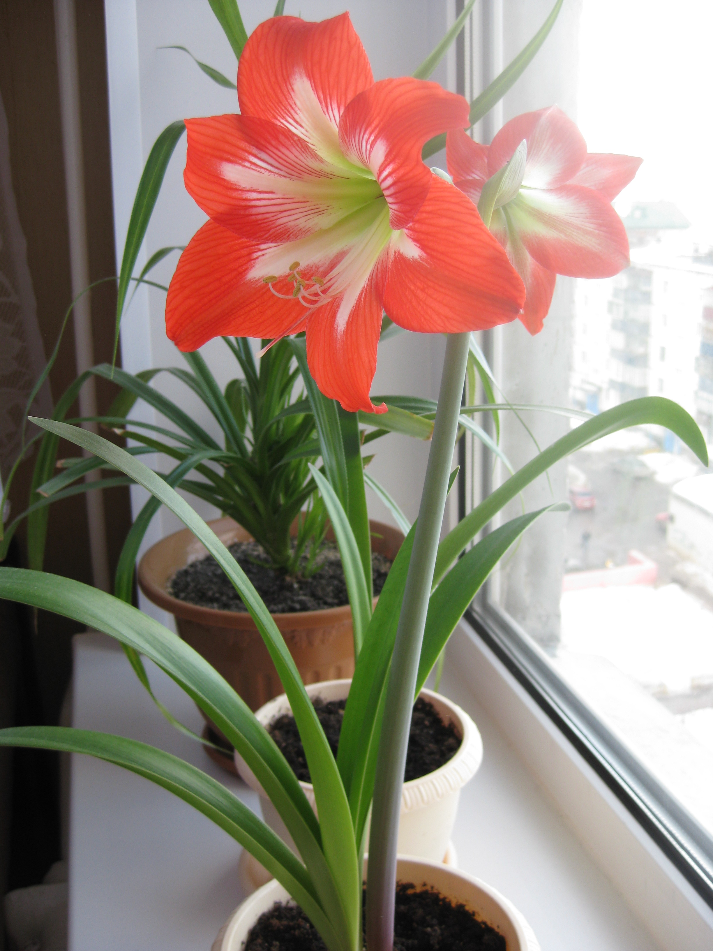 Один из двух. Признаки Гиппеаструма Цветонос (главное отличие) : полый Цветки, количество в цветоносе : 3-6 Диаметр : 12-15 см Аромат : нет Время цветения (в комнатных условиях можно регулировать) : конец зимы, весной Листья : появляются до или одновременно с цветочной стрелкой Луковица: форма : симметричная округлой формы диаметр : более 10 см у взрослого растения Признаки Амариллиса Цветонос (главное отличие) : не полый Цветки, количество в цветоносе: 6-12 диаметр : до 8 см аромат : ароматны Время цветения (в комнатных условиях можно регулировать): конец лета - осень Листья появляются после цветения (цветет в безлистном состоянии) Луковица форма : более вытянутая, может быть неправильной формы диаметр : около 6 см у взрослого растения Но мне тоже кажется что это гиппеаструм. Кстати, вопрос: после цветения что с цветоносом делать, дать самому засохнуть или все-таки срезать? |