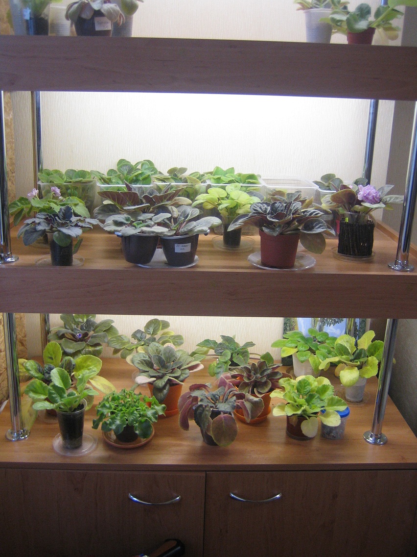 Стеллаж для фиалок, половино фиалок на подоконнике, почти все молодые, еще не цвели, но сидят набрав бутоны, ждемс....