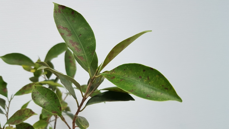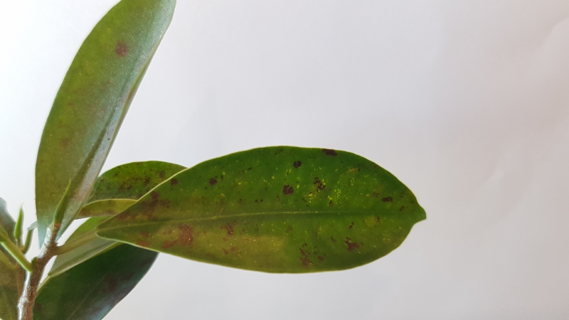 Подскажите, что с цветочком? Подарили фикус, а с о с листочками не понятно.