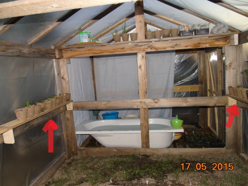 Забыла в том году похвастаться как мы тюнинговали теплицу.. сделали пристройку-баньку.. размер рассчитывала так, чтобы встали две бочки и легли поддоны ( один вдоль другой поперек). Шторки из ванны мне отдала девушка с Деткино (спасибо ей