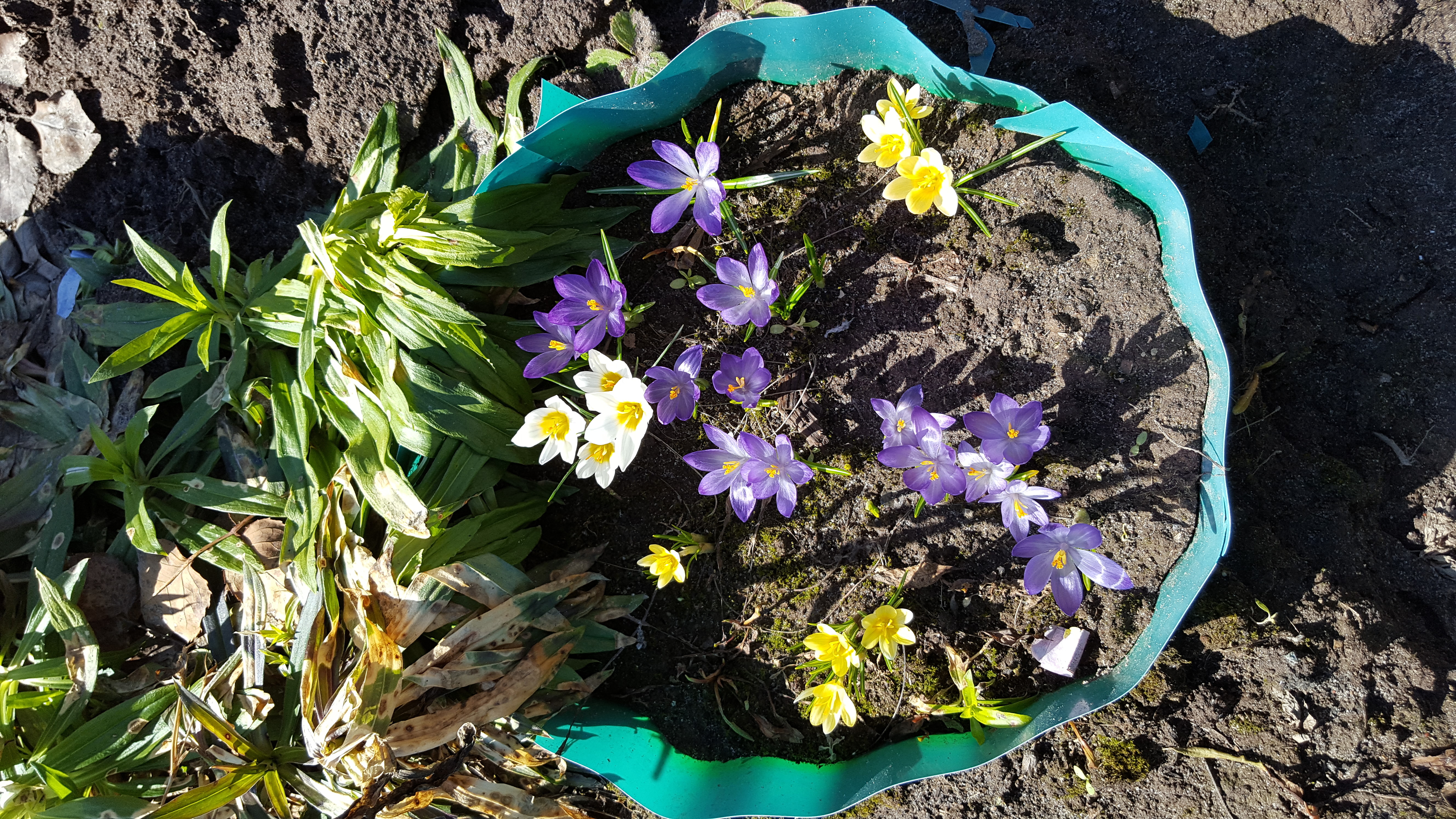 Ага прямо на земле, у меня длинная клумба, там и тюльпаны, и крокусы, и лилии вперемешку, так вот они на на ней лежали, не кучкой, разбросаны |
