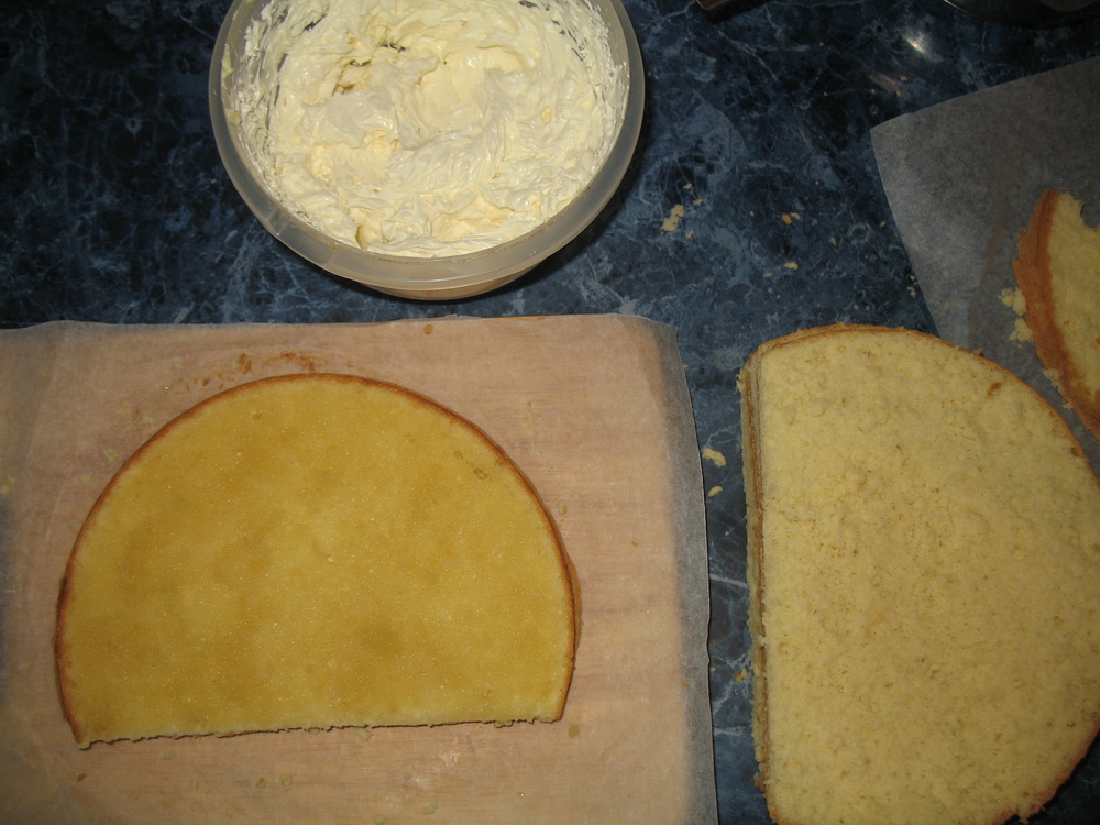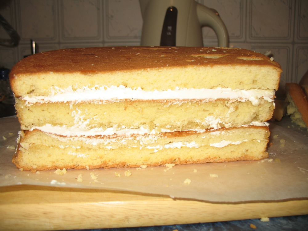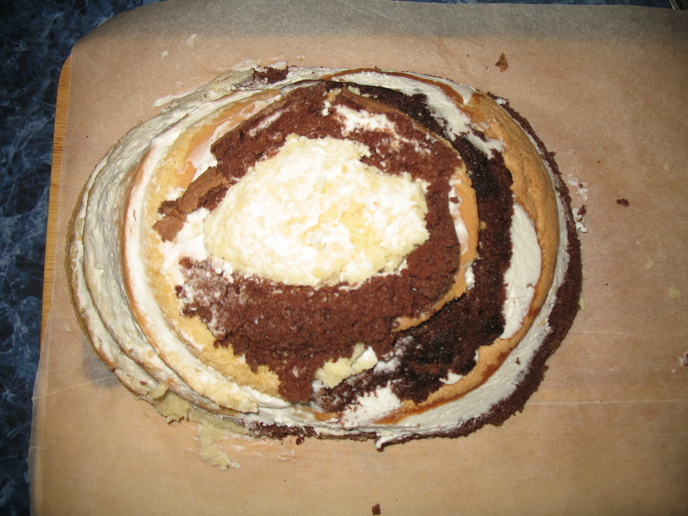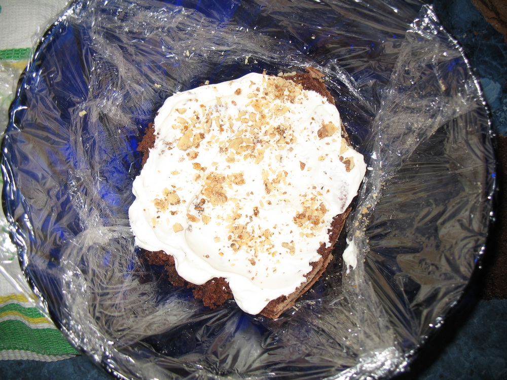 Здесь выравнивала кремом из сливочного масла и растопленного шоколда 1:1