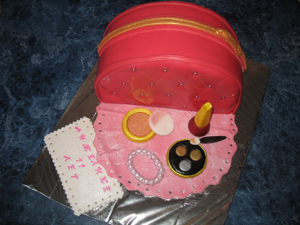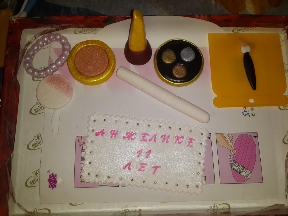 Этот торт делала дочурке на день рождение. Косметику лепила заранее, вот по этому МК http://loravo.keyartstudio.com/cakes/ca ... likatorom/ только здесь нужна регистрация для просмотра темы.