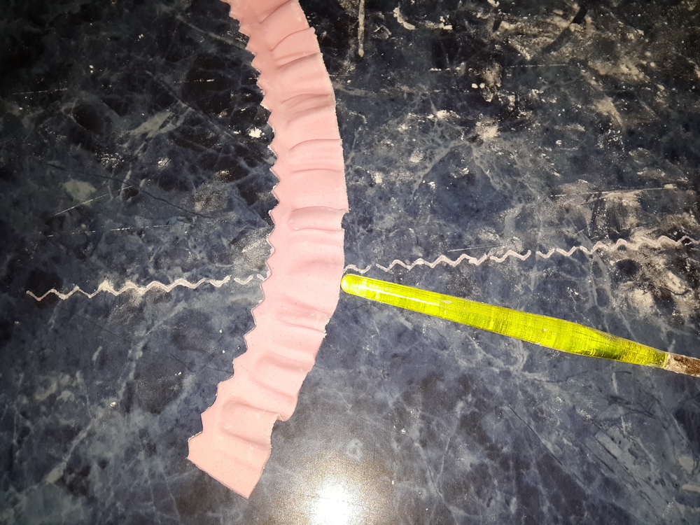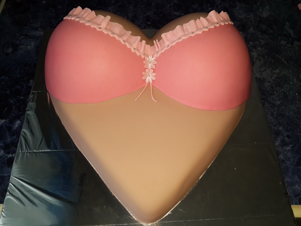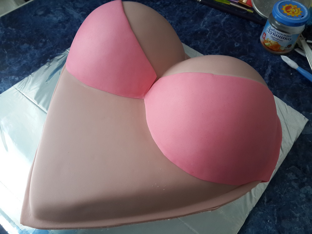 Вложение:  Испекла 4 бисквита: 1 квадратный, 1 круглый и 2 в форме груди.Вложение:  Так как у меня не было  формы сердца, пришлось его собирать из двух бисквитов. Вложение:  Вложение:  Подровняла.Вложение:  Пропитала коржи сиропом.Вложение:  Смазала масляным кремом со сгущенкой с добавлением какао и посыпала  обжаренным миндалем.Вложение:  Соединила все смазанные кремом  детали.Вложение:  Измельчила обрезки бисквита,  смешала их с кремом и выровняла этой смесью торт. Вложение:  Масляно шоколадным кремом окончательно выровняла торт.Вложение:  Сделала молочную мастику, окрасила. Вложение:  Недавно приобрела утюжок для мастики, после раскатывания мастики скалкой,  прошлась этим утюжком , пласт мастики получился идеально гладкий (эффект мне понравился).Вложение:  Обтянула торт мастикой.Вложение:  При помощи полиэтиленового пакетика сделала выкройку лифа. Вложение:  Специально для лифа купила мастику "Визьен" (побоялась, что из молочной не получатся рюши).Вложение:  Сделала рюши. Вложение:  Вложение:  Вложение:  |