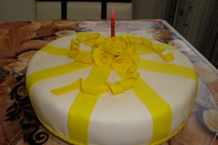 а то торт очень сладкий! насмотрелась в инете как красиво украсить торт белковым кремом , понравилось, думаю тоже попробую хорошо на кануне вечером делала, все сделала по рецепту (который нашла, белки взбить туда лимонку и сироп) покрыла торт, а часа через 3 заглядываю в холодильник о ужас он весь стек! сняла остатки ножом! давай на следующий день искать рецепт мастики, нашла из маршмелоу если правильно написала, первый раз делала, получилось! вот итог!