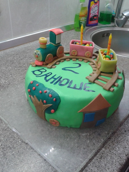 делала тортик на ДР. ребенку для кумы, не очень результатом