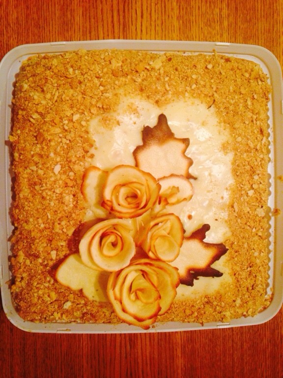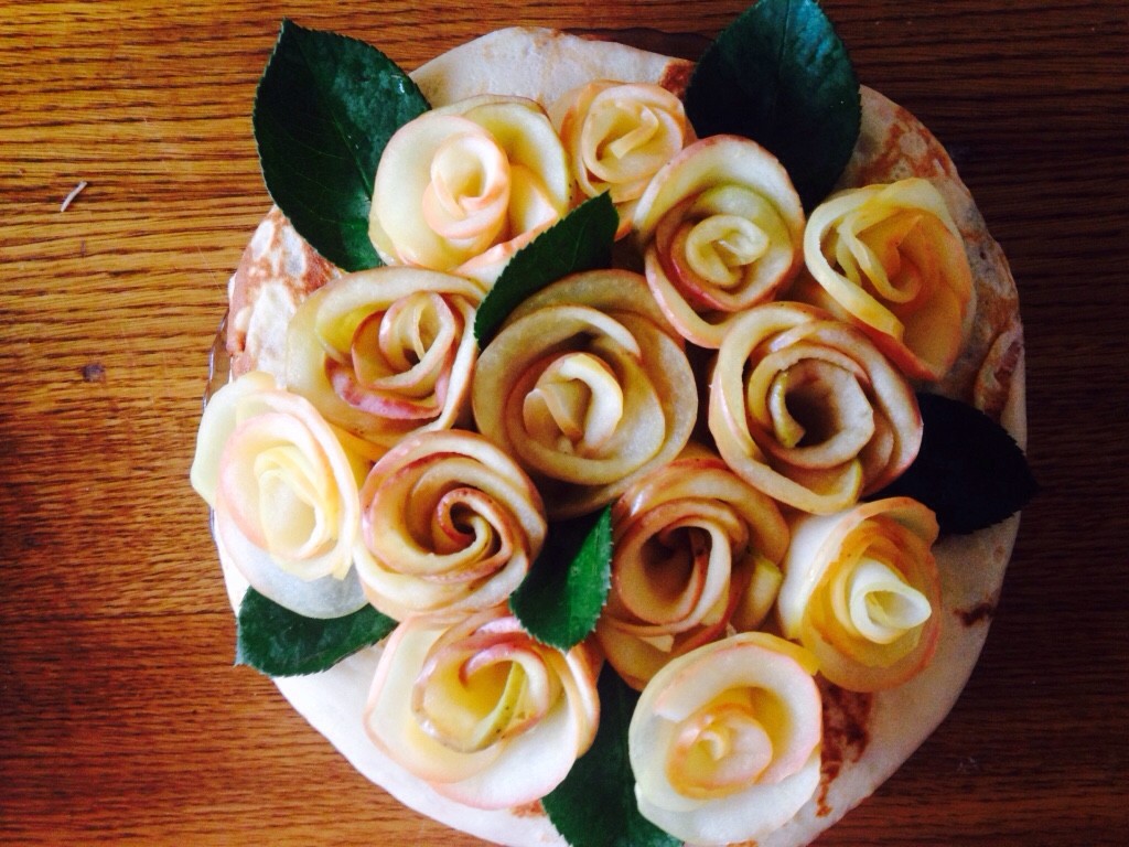розы на блинном из яблок? а листочки? медовый. соты как делали? |