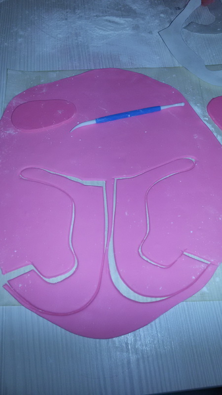 в первый раз попробовала " молд" пару дней мастика там сохла, потом сделала юбочку, и покрасила волосы, пинетки нашла в инете, у меня не работает принтер, поэтому приложила пергамент прям к экрану и обвела маркером!