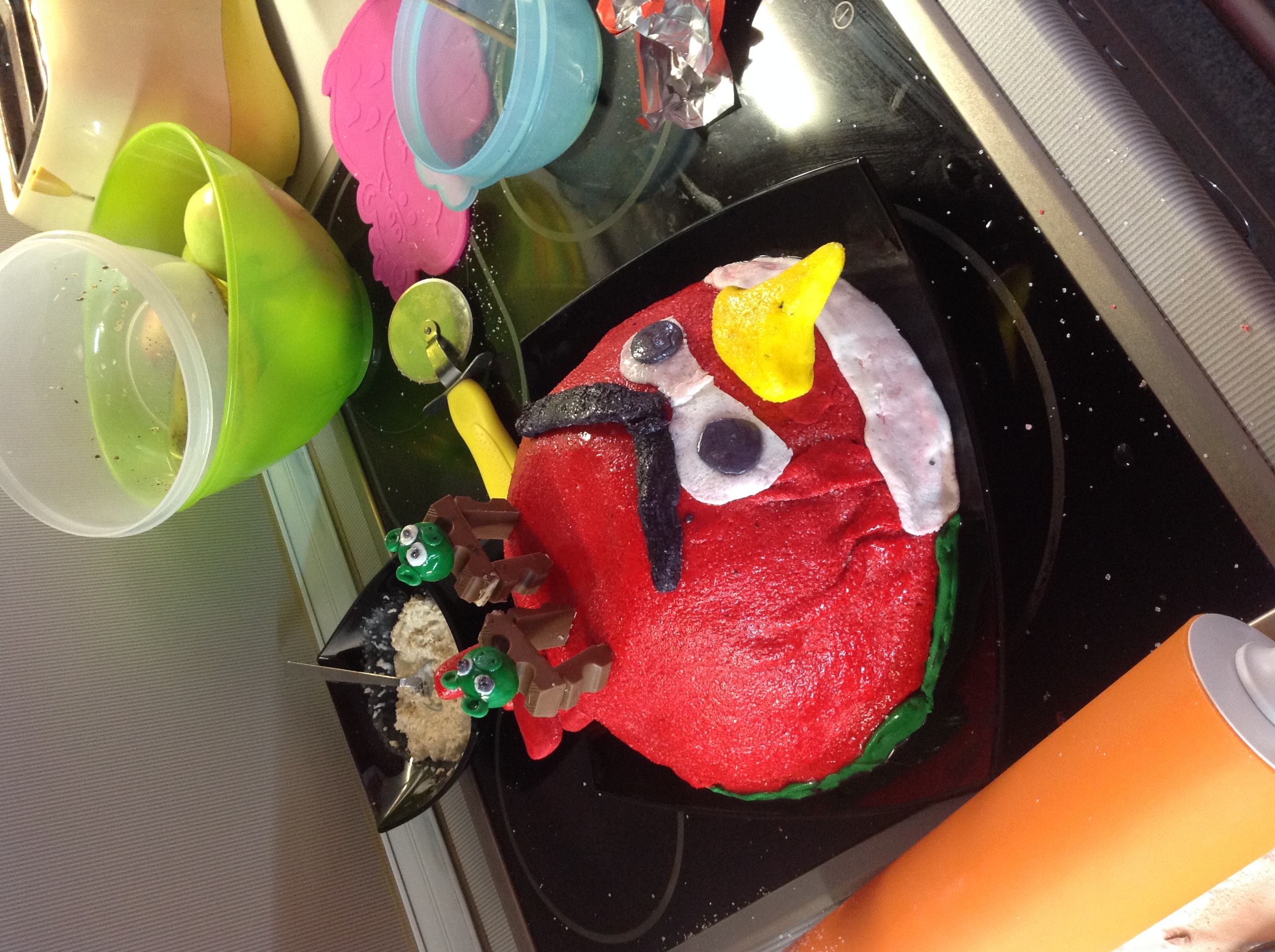 вчера ДР было у сына, 6 лет. Тема - Энгри Бердз. Внутри - бисквит на сгущенке (чередовала обычный с шоколадным), крем на сметане с ванилью и какао. Фигурки все из мастики, скрепляла шпажками.