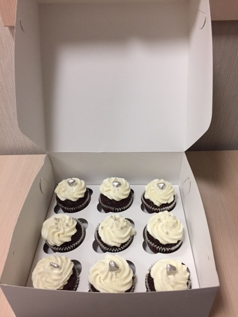 Бананово-шоколадные капкейки, пропитанные ганашем из белого шоколада, сверху крем чиз.