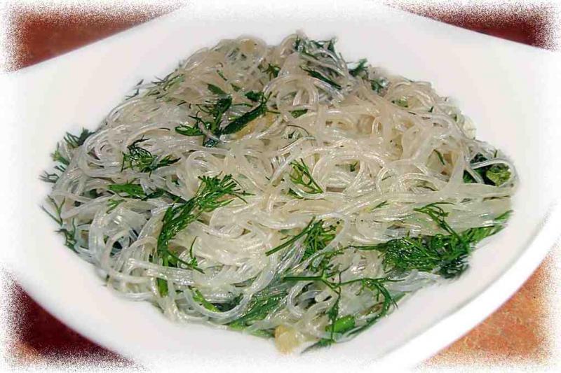 мне очень нравится простой салатик: фунчозу (я беру тоненькую) отварить, промыть в холодной воде. добавить морковь на терке, огурец на терке. заправляю спец. заправкой чим-чим. очень вкусно