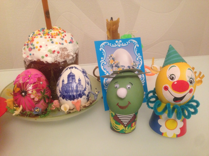 А вот и мои куличи, яйца украшала дочка.