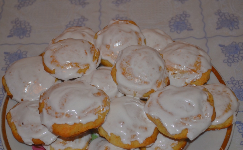 Включите духовку на 200градусов. 100гр размягченного сливочного масла взбейте миксером с 1 стаканом сахара, 100гр сметаны, 1 яйцом, пакетиком ванильного сахара или 1 ч.л. лимонной цедры. Просейте в миску 280гр муки (это примерно 2 стакана, оба без горки, вровень), 1/2 ч.л. негашеной соды и 1/3 ч.л. соли. Можно добавить 1 полную столовую ложку измельченных овсяных хлопьев ( так воздушнее и вкуснее) Не прекращая взбивать масло с сахаром и сметаной, всыпьте сухую смесь небольшими частями. Должно получиться мягкое, вязкое тесто. Пока вы взбивали, нагрелась духовка. Застелите противень бумагой для выпечки или смажьте маслом. При помощи двух чайных ложек выложите печенье небольшими кучками на расстоянии друг от друга. Испеките при 200градусах в течение 10 минут. Пробуйте готовность спичкой, воткните ее в серединку печенья, выньте - должна оставаться сухой. Выложите печенье на решетку для остывания, зарядите второй противень, испеките. я еще полила глазурью( 2 белка и 4 ст ложки сахара взбить и охладить)