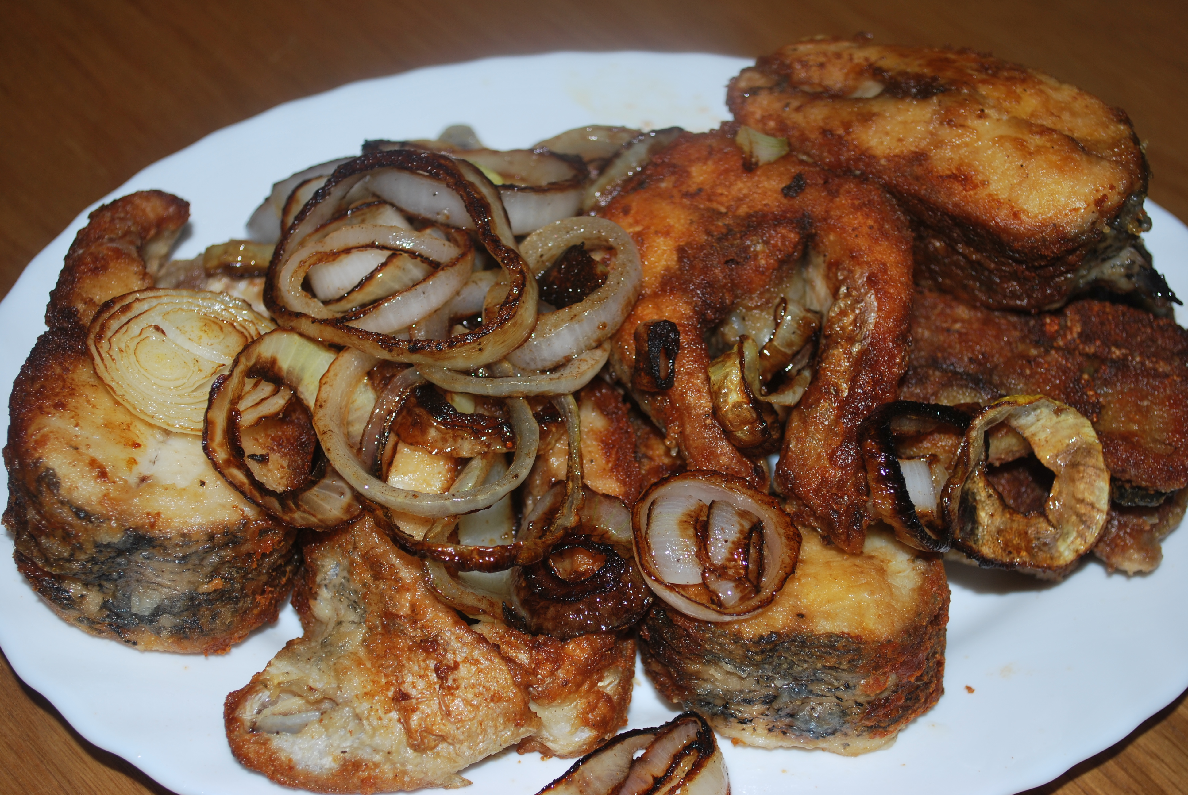 Жареная щука - муж наловил. Банановые оладьи. Рис с чахохбили из курицы. Вложение: Вложение: Вложение: Вложение: