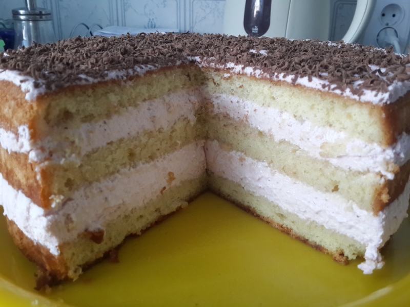 Девочки белок у меня плотный,и охлажденные беру,и вмесье сиешивала однажды белки с желтками и все равно ужас,а сравнила с безе,вот в бисквите ощущение ,как внутри безе ,может муки мало,хотя беру стакан.... а рецепт прослойки прост пачкатворога простоквашино взбиваю блендером,что б размешался добавляю чуть взбитые сливки,а сливки беру петмол всю пачку взбиваю и потом соединяю все,добавляем сахар.пудры на свой вкус и пол пачки желатина,разбавленным в половине стакана воды кипяченой или например в персиковом ,если будете делать...прослойка нежная вкус творога не чувствуется...одним словом очень вкусно,только не переборщите с желатином,а то прослойка будет тяжеловата,а я люблю как мусс ее.