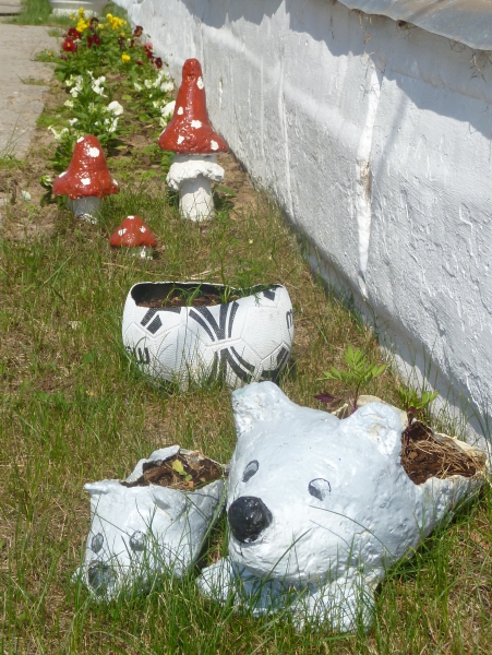 Мята писал(а): Берется бутылка с длинным горлышком( втыкать в землю удобнее )шляпка из гозеты сначала формируется, потом пеной монтажной, потом цемент с пва и покраска |