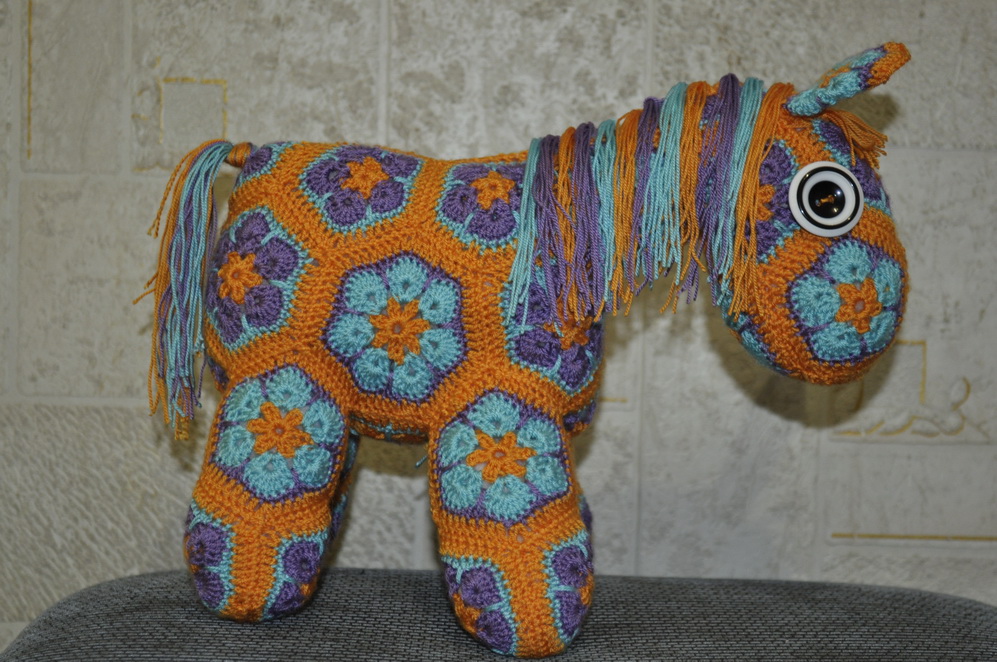 Хорошенькая лошадка, вот я крючком совсем не умею вязать, только петли.