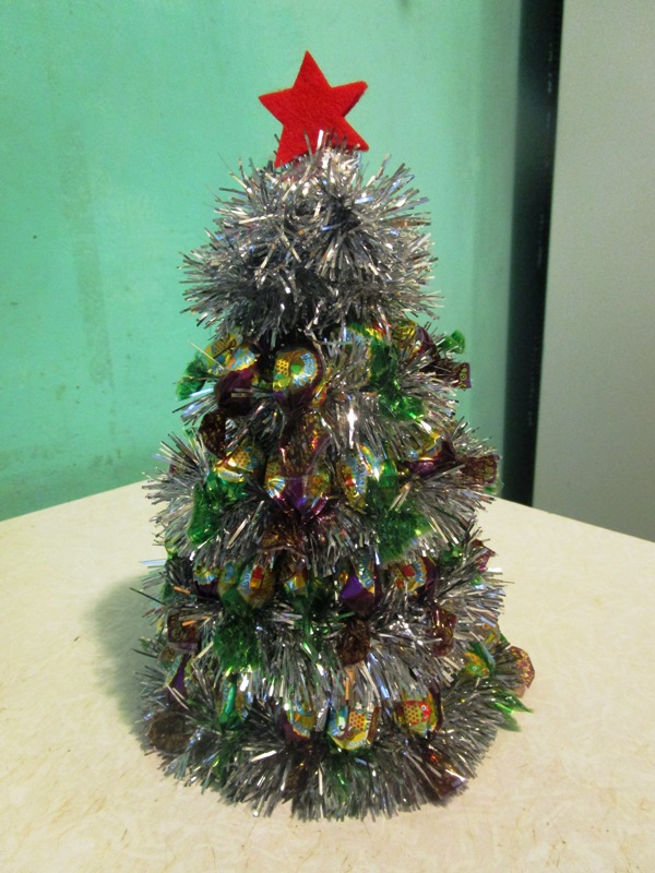 Очень красивое и актуальное украшение к НГ - конфетная ёлочка!