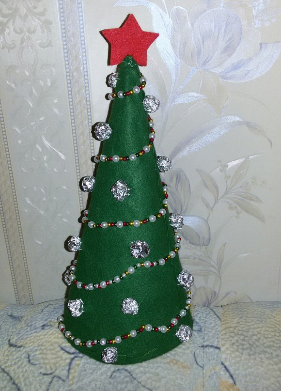 Как всегда, мой любимый фетр + бусинки, бисер и стеклярус + шарики из фольги (должны же дети помогать делать поделки!) + немного фантазии и интернет в помощь ![]()