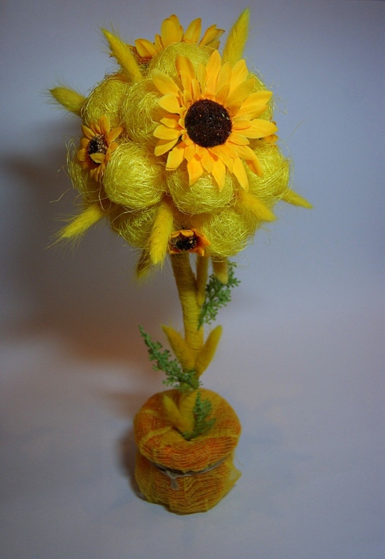 Новый топиарий, Подсолнух. Сизаль, лагурус, искусственные цветы, сетка флористическая.
