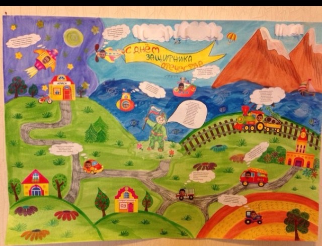 А мы рисуем стенгазеты сыну в гимназию, совмещаем рисунок с аппликацией