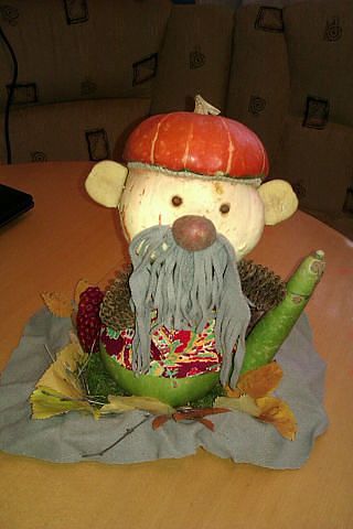 "Лесовичок" - это свежая поделка в школу из бабушкиных декоративных тыкв... Нос и уши из картошки, руки - шишки...