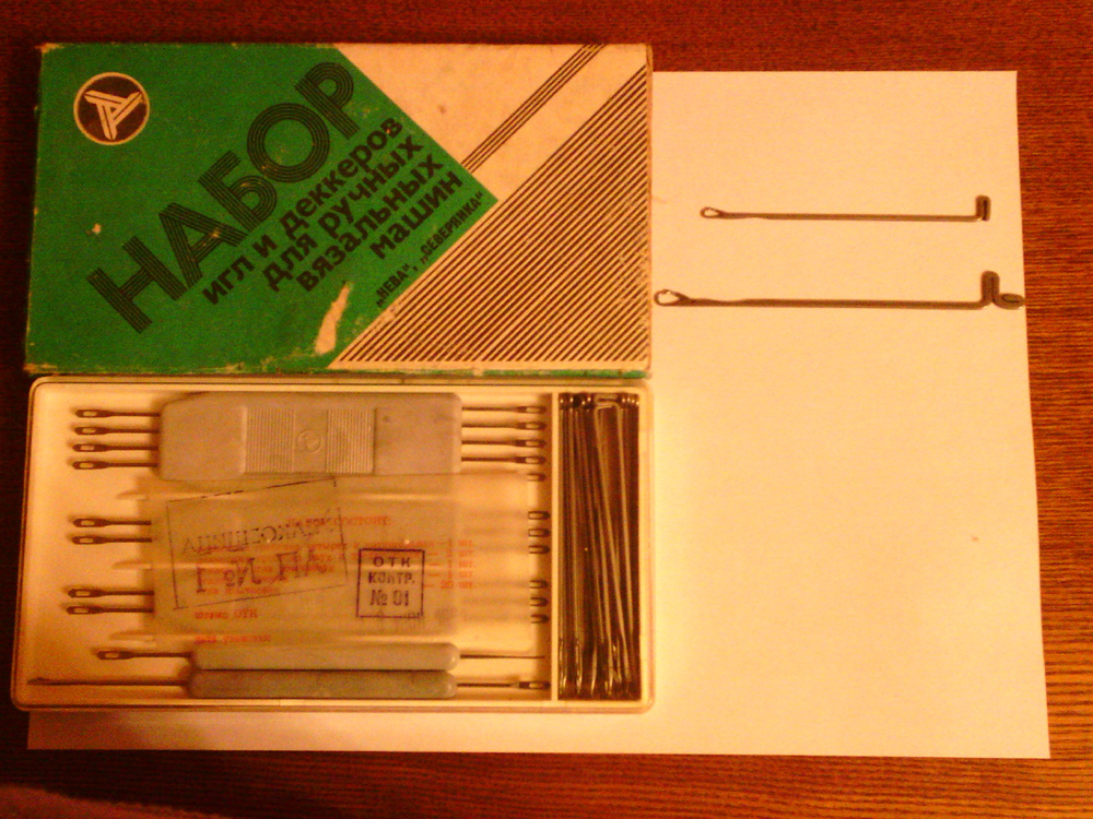 Изначально,как принесла домой ,разобрала и почистила керосином.Смазала рельсу и пяточки игл машинным маслом.Но после неудачных попыток и началом ремонта забросила это дело на год.Вот и стояла машиночка год в углу.Вчера я сильно разбирать не стала,просто выявила иголочки которые надо заменить.И почистила платины керосином,удалила старое масло.Рельс тоже сняла,а вот пружину что-то боязно снимать.Прошлый раз после того как мы с мужем сняли пружину ,что бы почистить потом долго мучились одевая её обратно.Внутри пружины на тот момент грязь свалялась в войлок.Покупала машинку у мужчины,у его жены тоже не получилось вязать,а она в свою очередь получила её в ,,приданное,, от своей мамы.И лежала она долго не работая.Пружинка чуточку в некоторых местах растянулась.Может в этом причина,что некоторые иглы вообще без всяких усилий ходили туда-сюда,как-то расхлябанно?Эх,мне в гости человечка,кто в этом соображает.Что бы посмотрел мою ,,ласточку,....У меня ведь до неё не было машинок,и как все выглядит в ,,норме,, я не знаю.А ещё я в коробке нашла набор деккеров и запасных игл в ,,заводской ,,упаковке но не от ,,Ладоги -1,,.У меня и иглы другие.Написано,что для Северянки и Невы.,,Ладога-1,, это аналог какой Невы?Перерыла весь нет,информации мало.Выставлю фотки машинки-посмотрите,стоит ли её восстанавливать?И что это за зверёк? И ещё вопрсик-можно ли спасти иголочку?Погнулся язычок.Может быть можно аккуратно выправить?А то с запасными у меня проблема...На фото с набором моя иголочка та ,что подлиннее.У ней и пяточка больше...Буду благодарна за любую помощь.