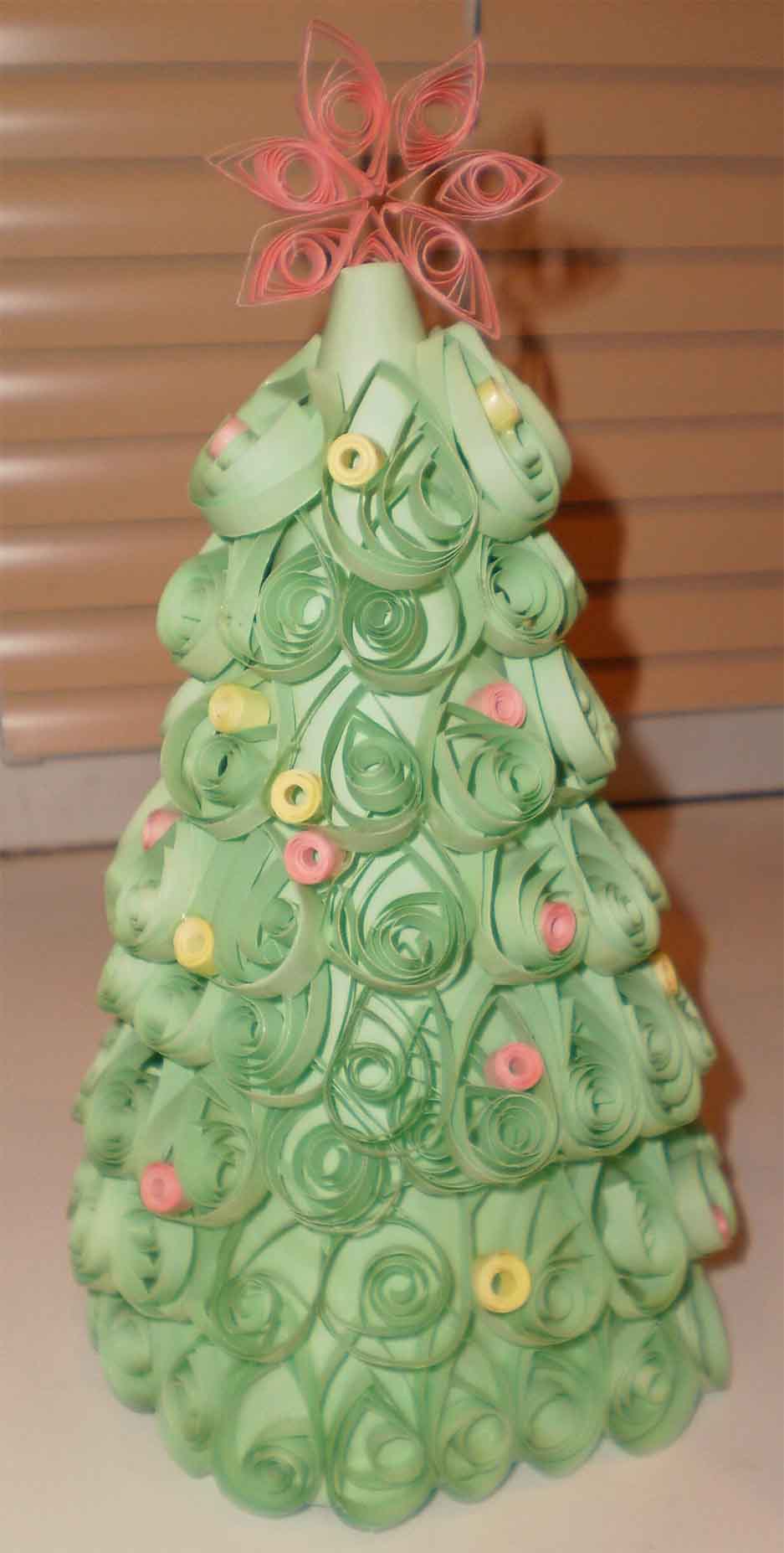 Буквально на прошлой неделе читала новогодние форумы и случайно увидела фото с елочкой в технике квиллинг... прям руки зачесались сотворить подобное. Описания там никакого не было, да и бумагу для квиллинга где у нас купить не знаю, но вроде что-то получилось: