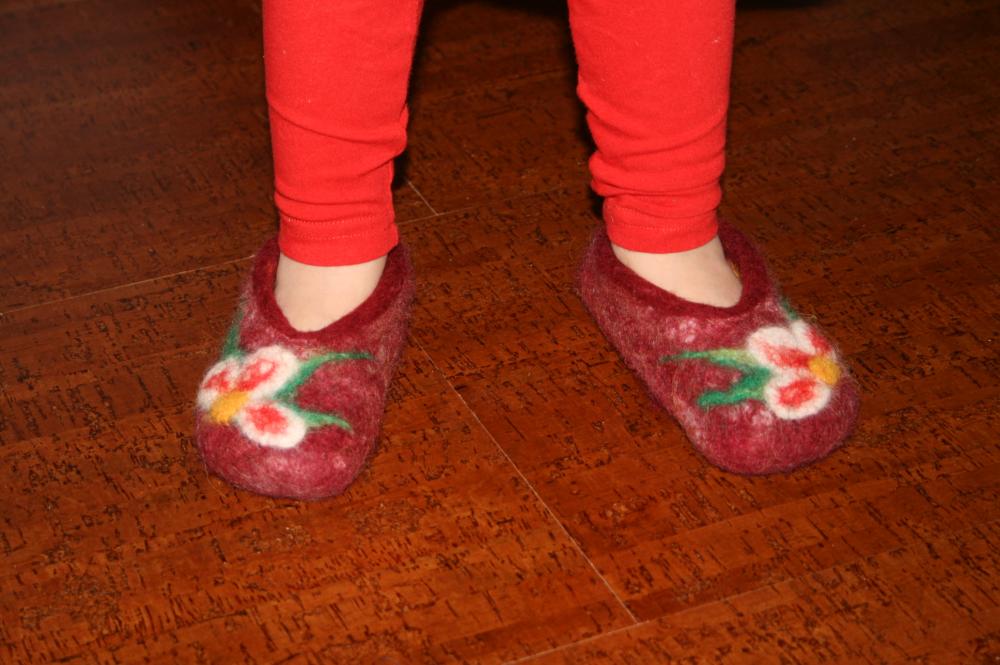 Вот мои первые тапочки. Сваляла для своих детей. Дольше собиралась :)