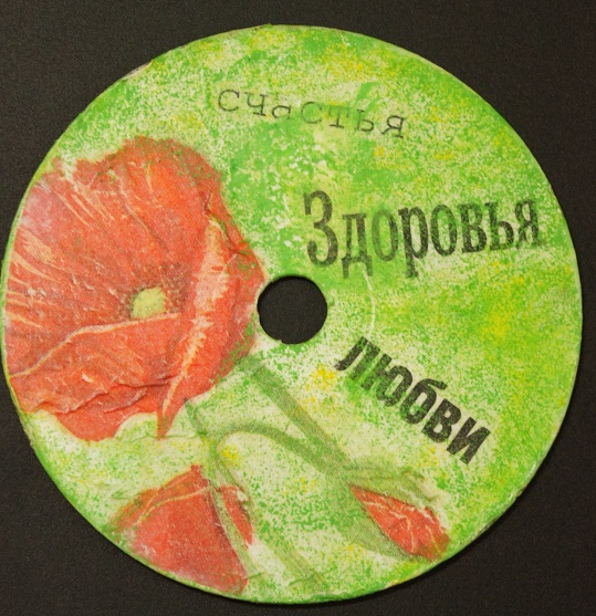 Девочки, вот все подглядывала-подглядывала за вашим декупажем, решилась на первую пробу - из Сд-диска сделала поздравительный магнитик в преддверии праздника! В общем, вот что получилось, хотя знаю, что ошибок уйма. Буду учиться)