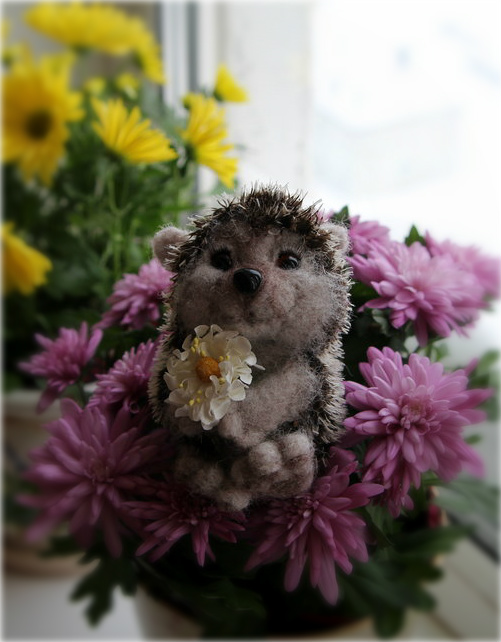 ![]() Видела несколько мастер классов по ежу и загорелась ими, правда самой проблемой оказалось купить ежиковый мохер, долго пришлось ждать.. Глазки и носик из стекла, шерсть тоже заказывала натуральную, неокрашенную ![]()