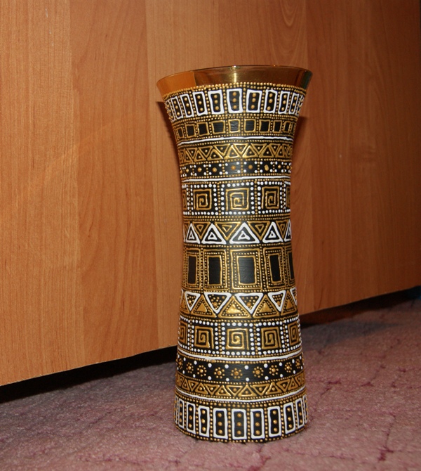 Ваза покрыта черным грунтом, расписывала двумя контурами, золотым и белым. Все узоры просто фантазия, Греческая Фото со вспышкой и без.