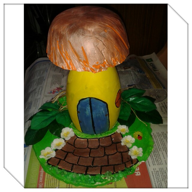 Сделали сегодня с детьми из гипса гриб. Но так как помогали дети