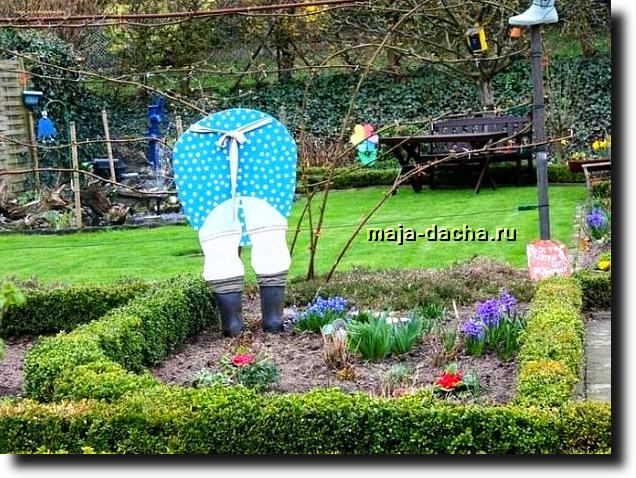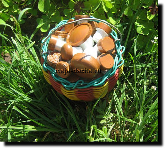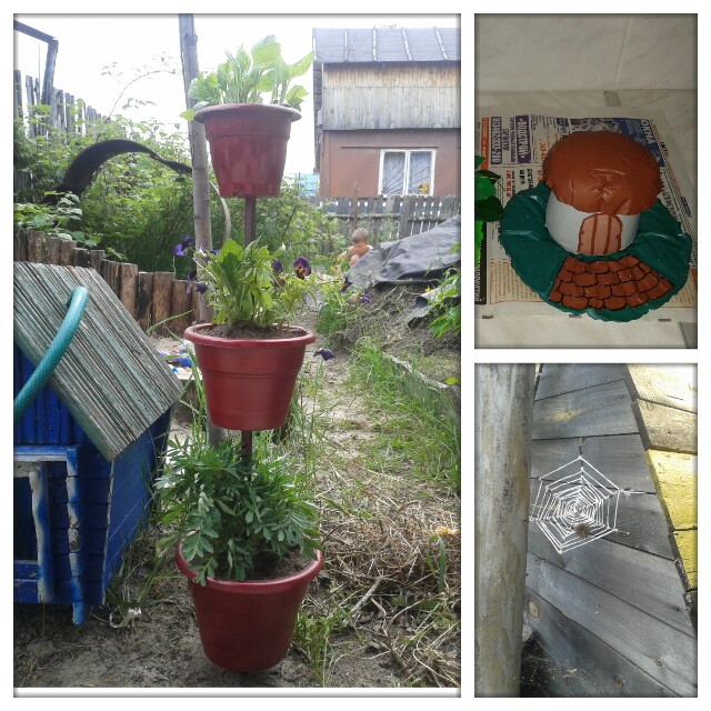 Я смастерила на даче клумбочку и паутинку. И еще грибок из гипса.