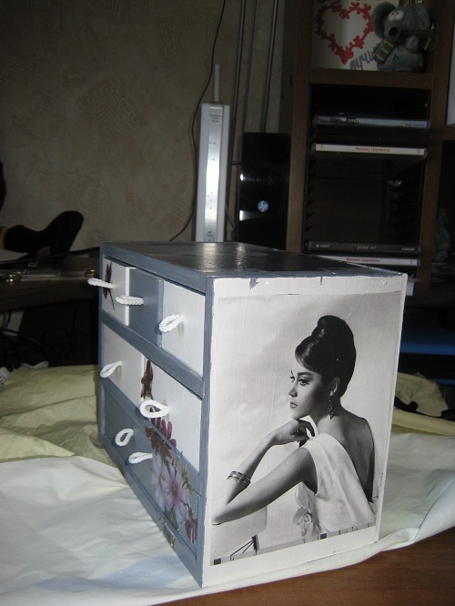 Вложение: Шкатулка для всяких мелочей Вложение: ключница,правда сфоткала до того,как стекло отмыла Вложение: для косметики,с автором в отражении ![]() Вложение: а вот таким стал старый ящик для овощей |