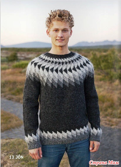 ![]() Потом вяжу свитер сыну. Помните года 2 назад я вязала дочке исландский свитер с круглой кокеткой? Вот по такому же принципу сын заказал себе. Могу показать схему, может ещё кто захочет со мной вязать ![]() Свитер вот такой.
