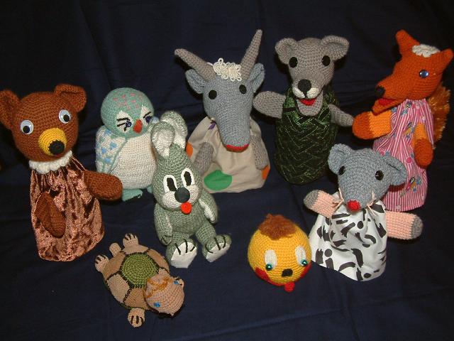 Представляю вам свой кукольный театр ![]() Вязанием игрушек увлеклась в период беременности с Вадимом (1996 г.). Много было всяких зверушек - от напольных до маленьких. Когда Вадику было 2 годика, связала персонажей из сказок, которые надеваются на руку - "колобок", "курочка ряба", "теремок", "семеро козлят". Ему нравилось, он носил в садик. Однажды воспитатель ненавязчиво попросила подарить садику этот театр, так как он так нравился деткам, что только этими игрушками они могли заинтересовать и угомонить детей. Ну, я по молодости и простоте душевной, все и оставила. Второй раз загорелась этой идеей и начала снова вязать уже для Семки. Вяжу на глаз. Идея очень простая - все вяжется крючком по кругу, где надо расширить - петли добавляются, надо сузить - убавляются. Тело делаю из ткани, чтоб нарядней было, хвосты - из искусственного меха. Могу выложить описание одной зверушки, по которому уже во всей России и странах зарубежья мамочки создали свои театры ![]()