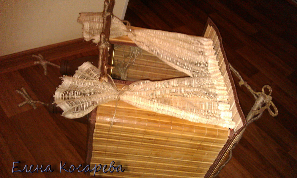 Каркас конструкции (пол, потолок) составляет металлическая коробка от шоколадных конфет "Sorini". При наших низких температурах и ветрах - бамбуковые стены и крыша не должны быть лишними.  ◊ Просто заставить любить не по силам никому. Даже Господь не заставляет нас Его любить, хотя мог бы. Он ждет, что любить Его будут по собственной воле.   														 |