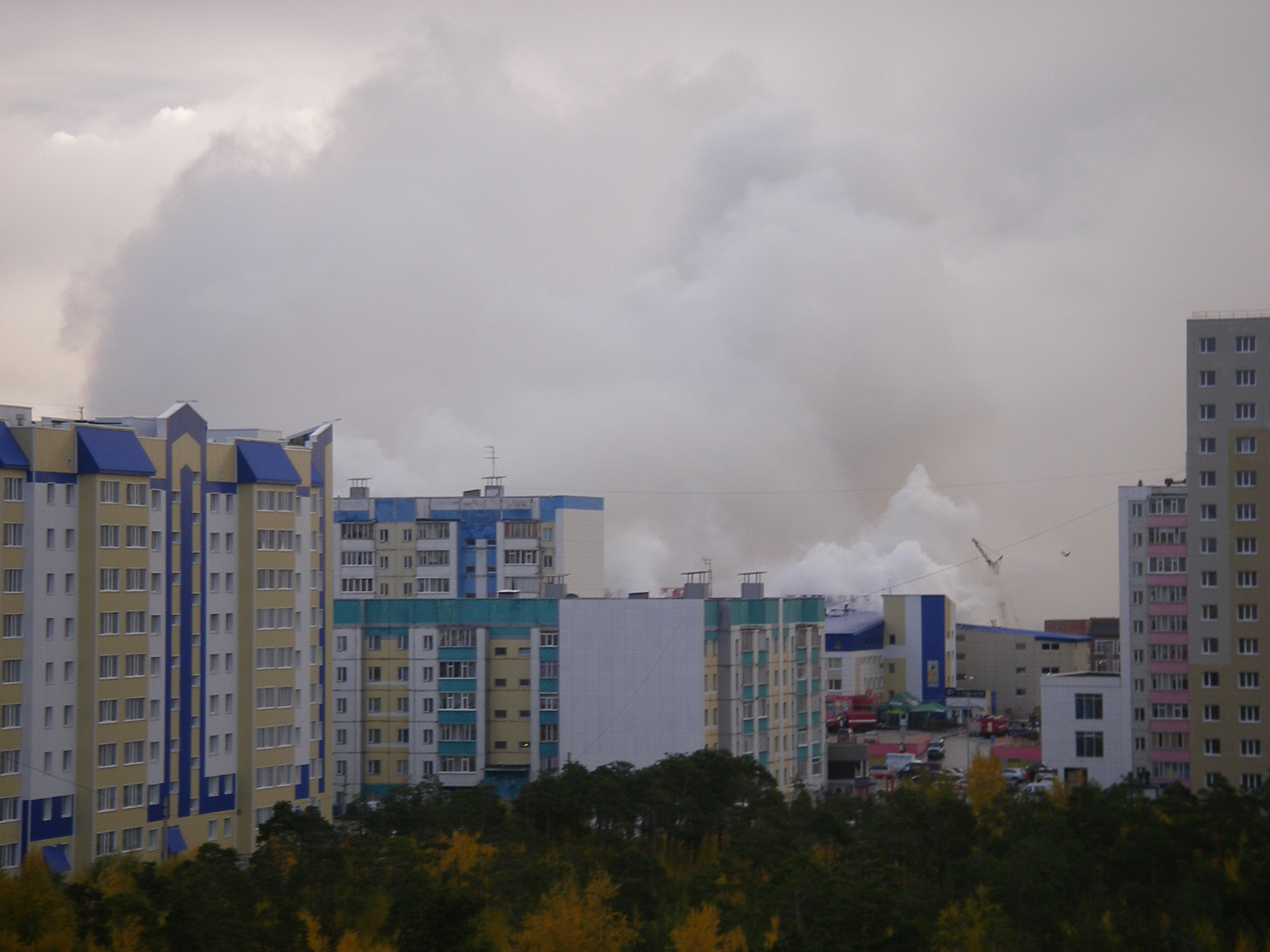 Обрушится "Богатырь" или нет, не знаю, но в данный момент он, по-моему, горит. Дым виден издалека...