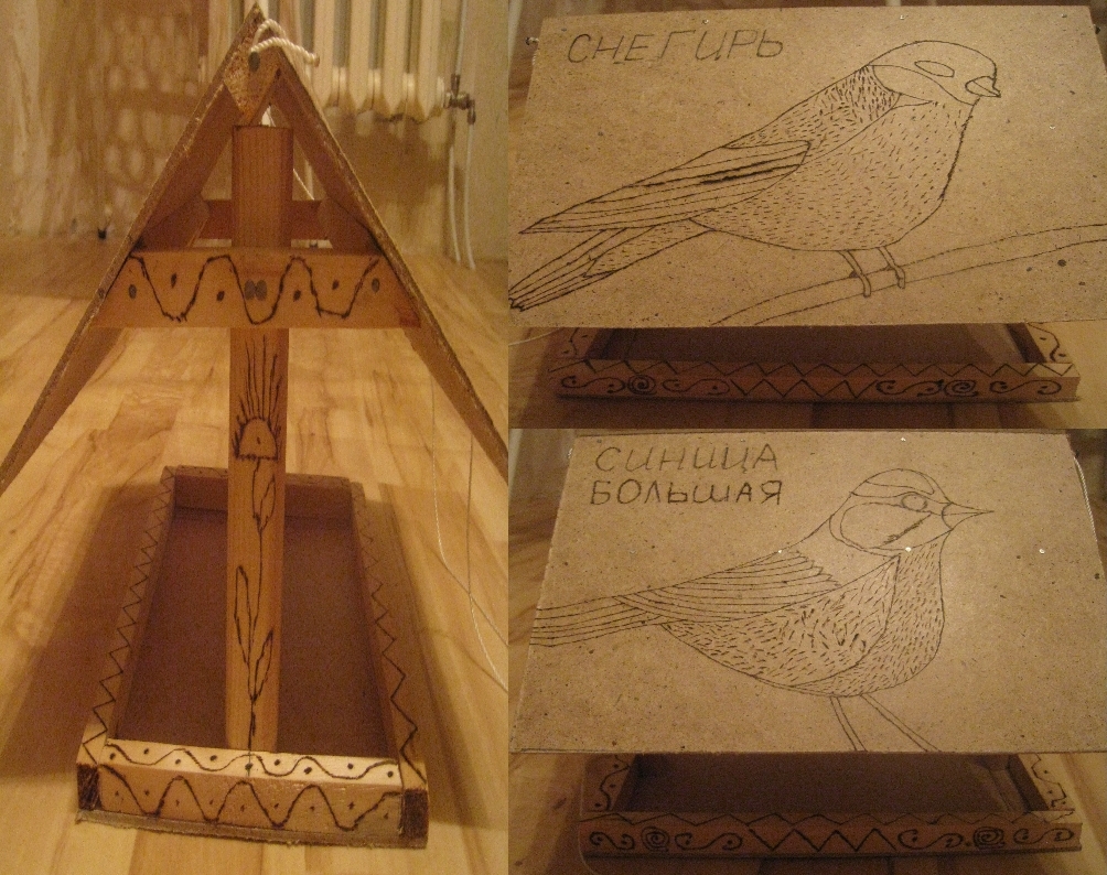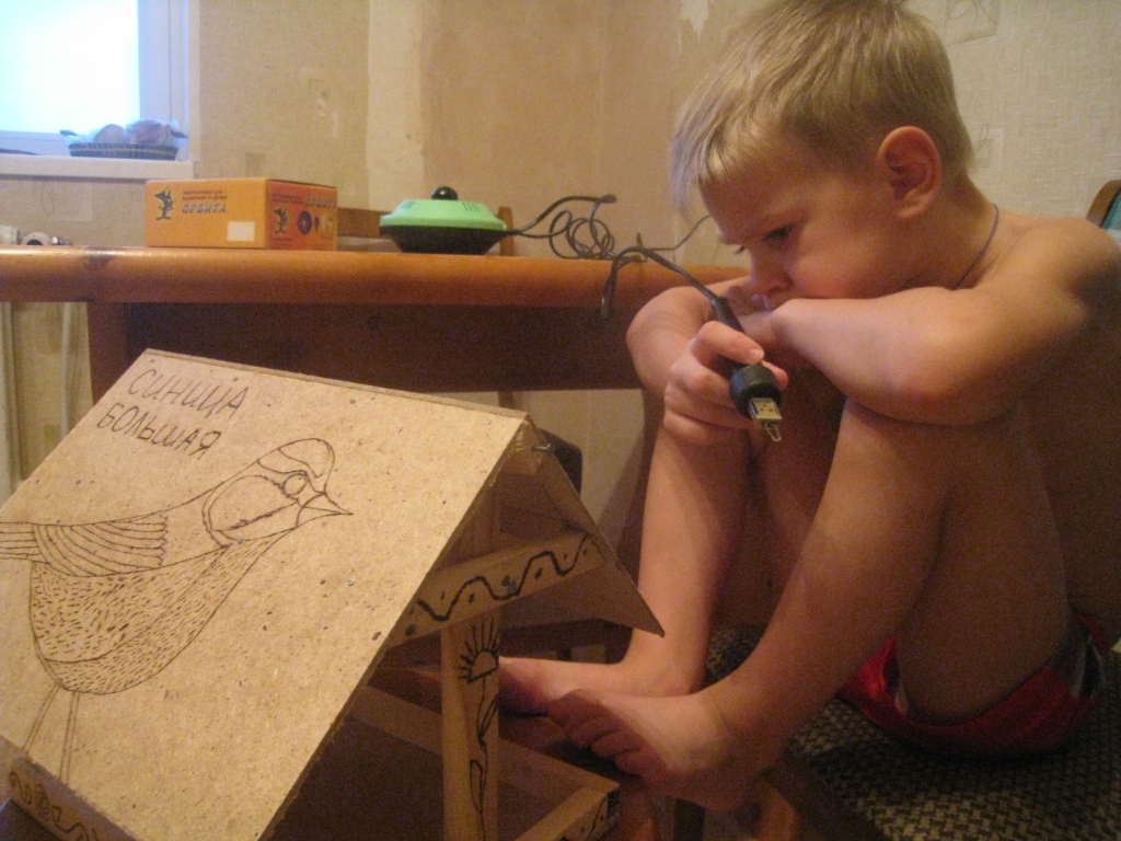 отличная кормушка, оч творчески вы подошли к процессу!!! из остальных групп не обращались с просьбой и для них такие же сделать? я расписание в сад оформила в фотошопе - так потом половине групп делала... ![]() а сын во скока лет выжигать начал?