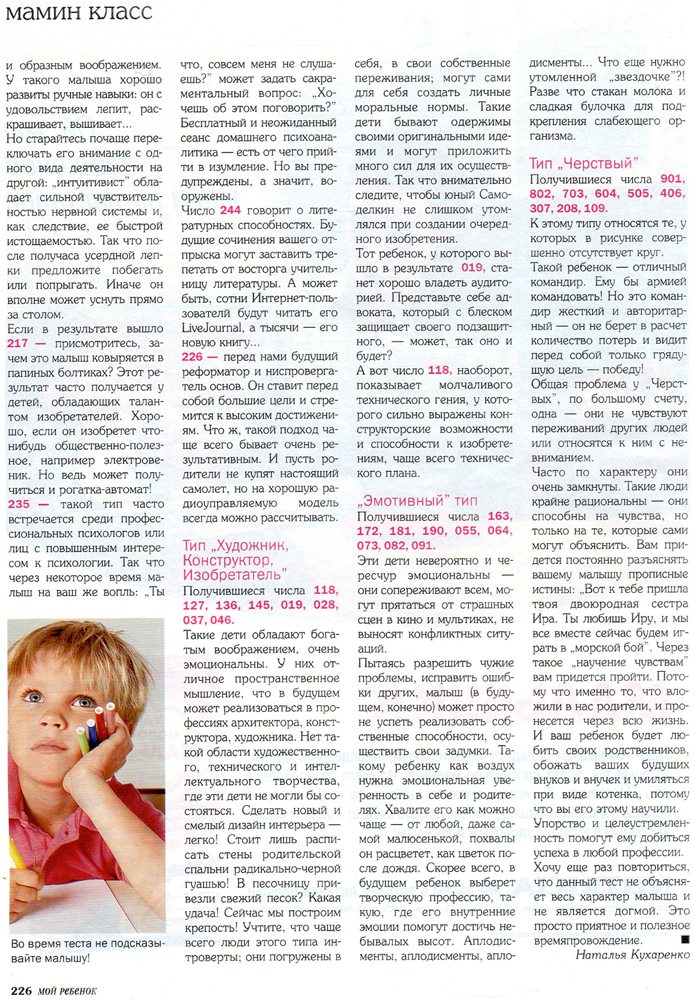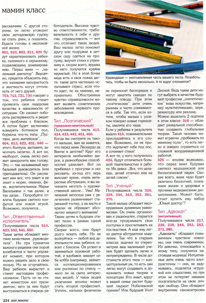 У меня, вот, тоже есть тест, по которому можно понять к чему предрасположен ваш ребенок, что его может ждать в будущем.