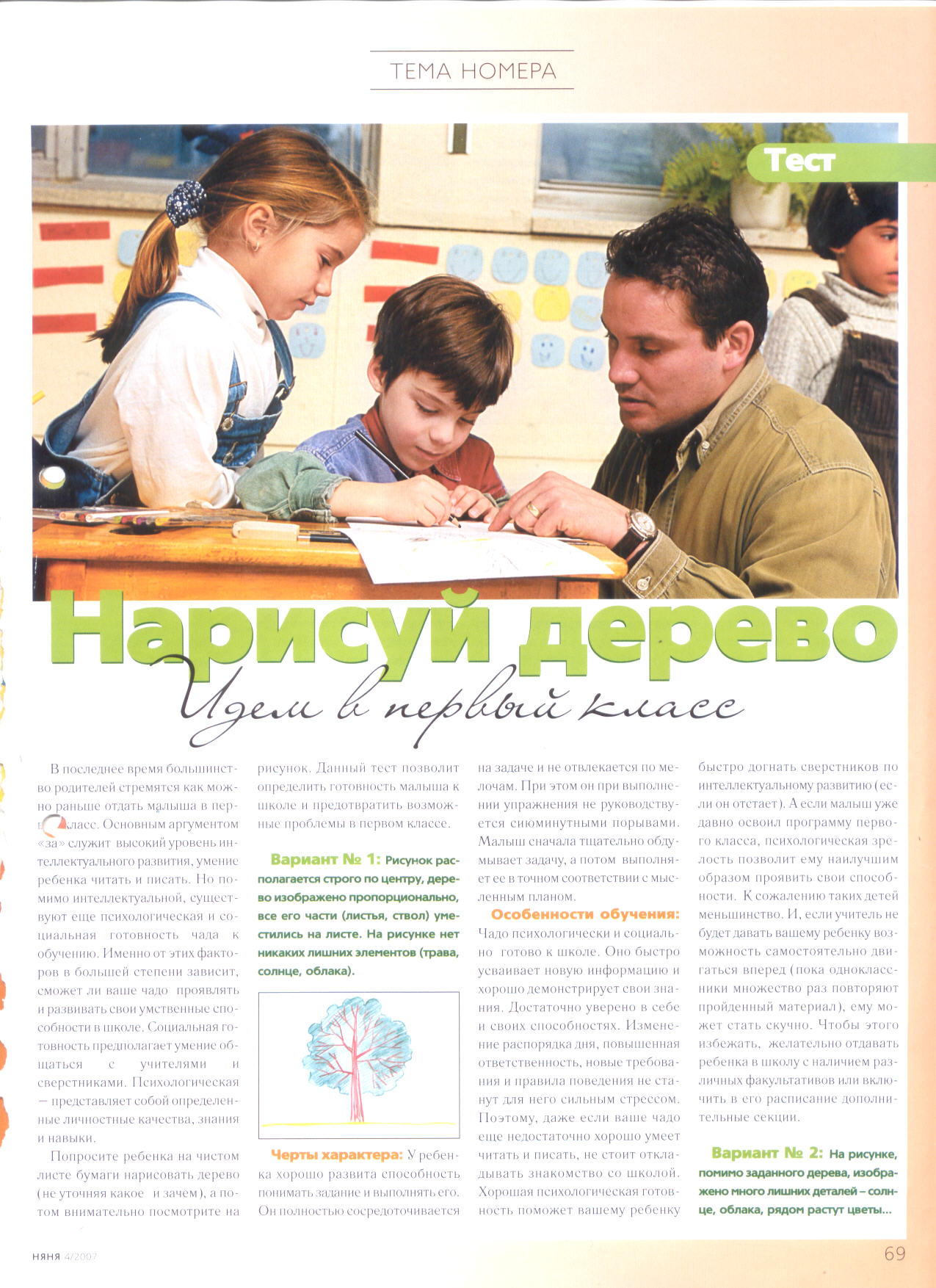 Нарисуй дерево Данный тест позволит определить готовность малыша к школе))) Журнал "Няня" №4 2007